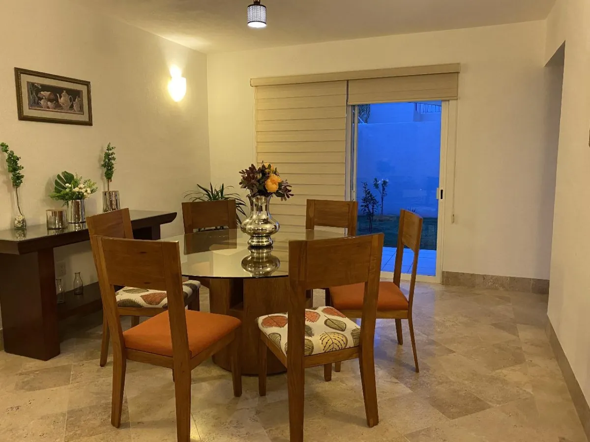 Comedor con una hermosa vista panorámica hacia el jardín posterior de 42.52 m², perfecto para conectar con la naturaleza sin salir de casa.